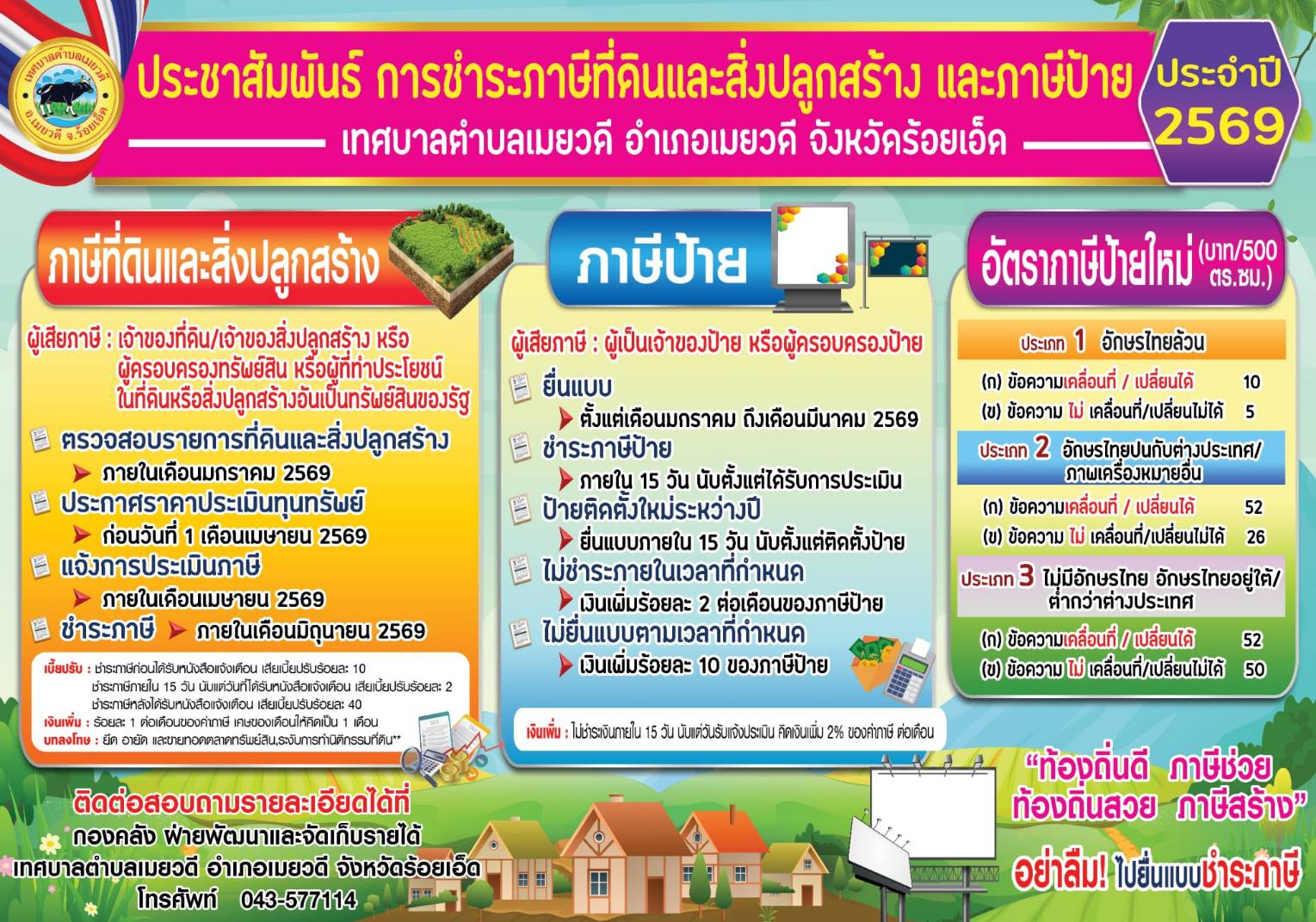 การชำระภาษีที่ดินและสิง่ปลูกสร้าง และภาษีป้าย ประจำปี 2569